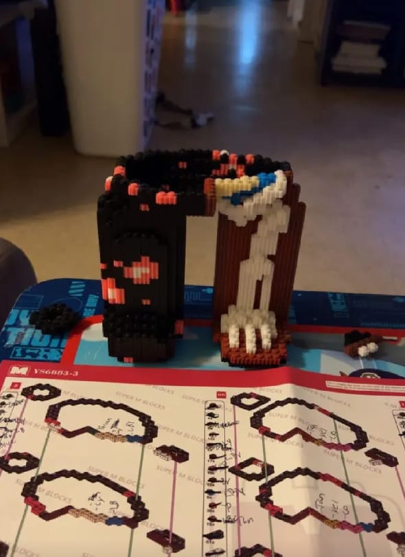 Le boulot et le défilement sans fin m’avaient épuisée, mais construire mon BélooBlocs m’a offert une vraie bulle de calme. Plus que la tête à monter et je le mettrai sur le meuble prés de la télé dans ma chambre ! Je suis accro !